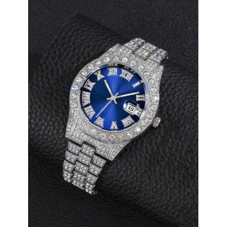 Ceas bărbătesc quartz elegant cu afișaj dată și decor cu pietricele strălucitoare. Design sofisticat, perfect pentru stilul tău.