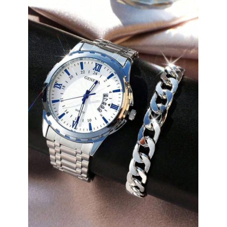 Descoperă eleganța și rafinamentul în acest set ceas și brățară pentru bărbați. Ceasul cu mecanism cu quartz și cadran rotund este o piesă clasică ce exprimă stilul și precizia, completată perfect de o brățară potrivită pentru a evidenția un look sofisticat și modern. Acest set este o alegere ideală pentru a adăuga o notă de eleganță oricărei ținute.
