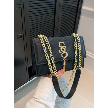 Îmbunătățește-ți stilul cu această geantă pătrată neagră pentru femei, decorată cu litere metalice. Perfectă pentru orice ocazie, această geantă adaugă un element de rafinament și eleganță oricărei ținute. Designul modern și minimalist combinat cu decorațiunile metalice atrăgătoare creează un accesoriu chic și versatil. Fabricată din materiale de înaltă calitate, această geantă asigură durabilitate și confort în purtare. Alege această geantă pătrată neagră pentru un look sofisticat și atemporal, ideal pentru fiecare zi.